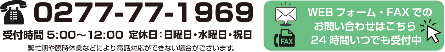 桐生地方卸売市場にて青果物の卸を営んでおります。低温管理設備を常備・配送にも勿論低温管理設備を備えた専用車両にて毎日新鮮そのまま野菜・果物をお届けいたします。